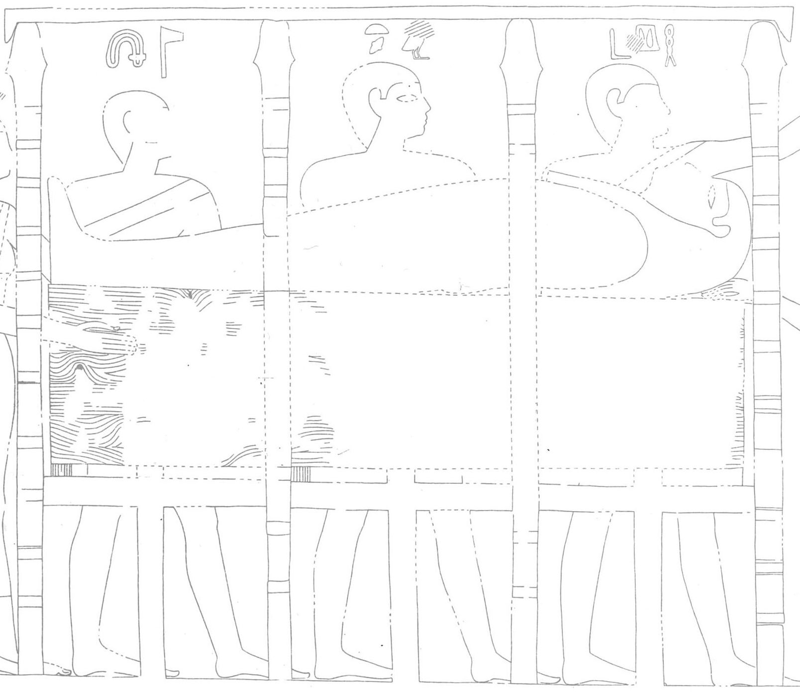 De chery-heb, chetemoe-netjer en wyt (wt) tijdens de begrafenis. Detail van reliëf uit de tombe van Antefoker en Senet (Thebe, Middenrijk)de Garis Davies, N., en Gardiner, A.H., The Tomb of Antefoker, Vizier of Sesostris I, and of His Wife, Senet (no. 60) (Londen, 1920), pl. XXI