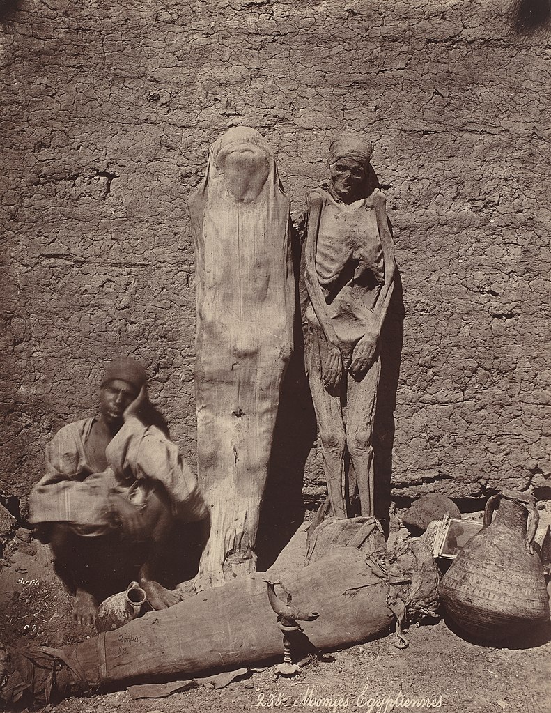 Een foto van Egyptische mummies, getrokken omstreeks 1870