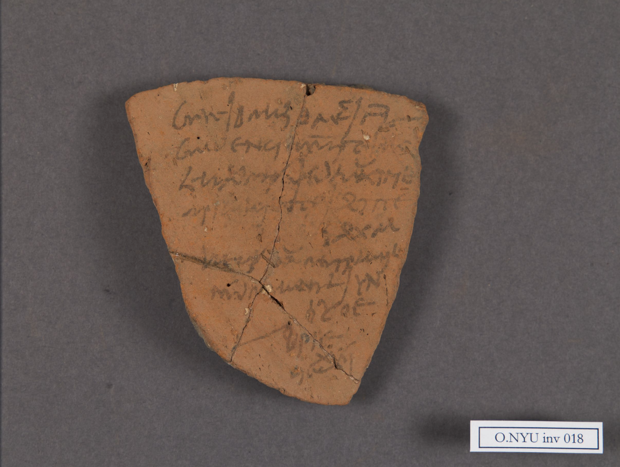 Griekse kwitantie uit Diospolis Mikra voor belasting op mummificatie of balsemers en kedria (O. NYU 4, 105 v.C., New York University, O. 18)