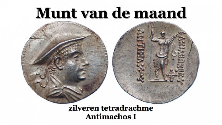 Voor de munt van deze maand, een zilveren tetradrachme van koning Antimachos I, verlaten we het vertrouwde Middellandse Zeegebied en trekken we ver naar het oosten, meer bepaald naar Noord-Afghanistan en Zuid-Tadjikistan. Dit gebied, genesteld tussen adembenemende bergketens, stond in de Oudheid bekend als Baktrië en daar vormen munten de voornaamste historische bron om de Graeco-Baktrische geschiedenis te onderzoeken.